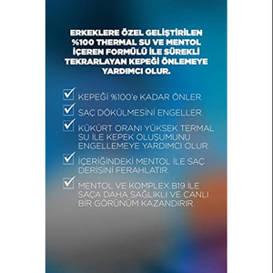 The formula, specially developed for men with 100% thermal water and menthol, helps prevent recurring dandruff. Prevents hair loss with the included patented plant complex B19. Ensures a flake-free scalp with thermal water and menthol.