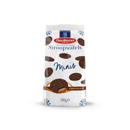 Indulge in the sweet and rich taste of Daelmans Mini Chocolate Stroopwafels. These mini-sized Dutch treats feature a perfect combination of two thin, crisp waffles filled with a delectable caramel center, all coated in smooth, velvety chocolate. The mini size makes them ideal for snacking or as a sweet treat to enjoy with your coffee or tea. Packaged in a convenient cello bag, these stroopwafels are perfect for sharing or gifting.