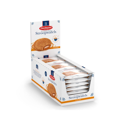 Crafted in the Netherlands, Daelmans Stroopwafels are a perfect companion to your coffee or tea. Simply place the cookie on top of your hot beverage, allowing the caramel filling to soften slightly for a warm, gooey indulgence. Whether you're introducing a classic Dutch treat to family or gifting someone special, Daelmans Stroopwafels are a perfect choice.