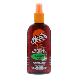 For over 20 years, Malibu has been creating high-quality, affordable "sun protection for every body". Our extensive range of formulas and LSFs cater to all ages and skin requirements. Malibu Sun SPF 15 Bronzing Fast Tanning Argan Oil is specially formulated to support the skin's natural tanning process. This nourishing formula leaves your skin glowing, with Malibu's world-famous tropical scent. Argan Oil hydrates your skin, keeping it hydrated and smooth. Each of our bottles is made in England and is clinically proven to be kind to your skin, and always tested on humans only.