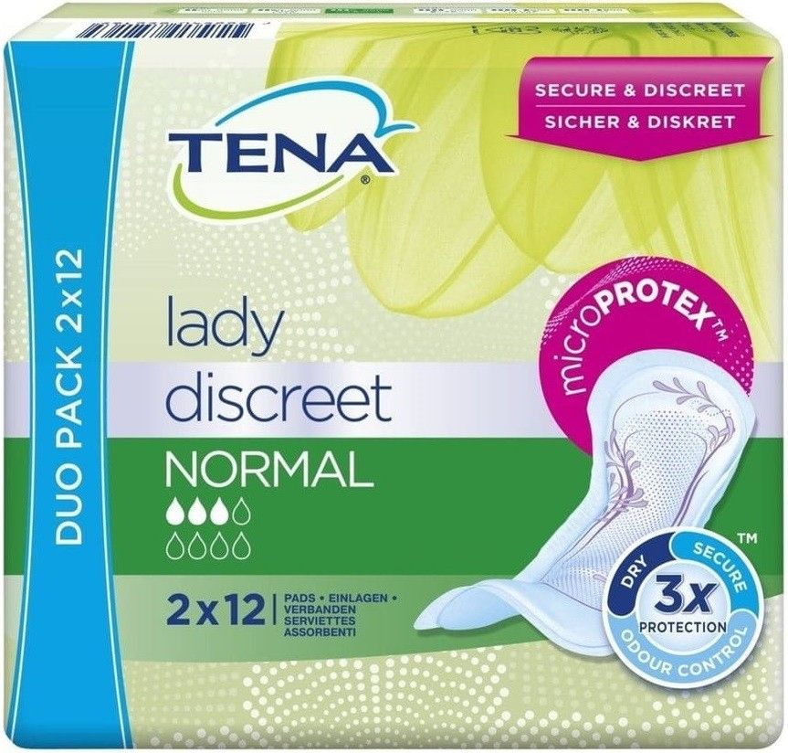 TENA Lady Discreet Normal Pads, Pack of 24 Pieces: