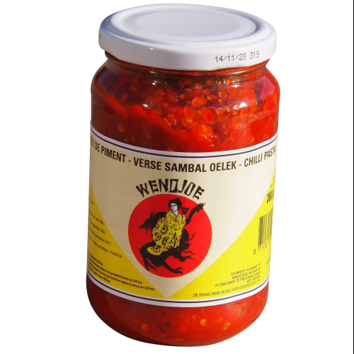 WENDJOE - Sambal Oelek (1 x 360 GR) is an authentic, spicy chili paste that adds a burst of heat and flavor to a variety of dishes. Made with fresh ground chilies, this sambal oelek is crafted for those who enjoy a bold and fiery taste. Ideal for use as a condiment, marinade, or ingredient in cooking, it enhances the flavor of meats, vegetables, noodles, and rice dishes. The 360-gram jar provides a convenient amount for household use or culinary professionals, ensuring you have plenty to add spice to your meals.